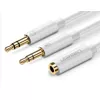 Ugreen 20897. Pistmik 1: 2 x 3.5mm, Konnektor 1 sugu: Meessoost, Pistmik 2: 3.5mm, Konnektor 2 sugu: Naissoost, Pistmikukontaktide kate: Kuld, Kaabli pikkus: 0,2 m, Toote värv: Valge